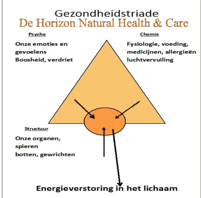Alles wat je als mens meemaakt moet op alle drie de vlakken verwerkt worden. Wordt één vlak overbelast, dan zal er op de andere vlakken gecompenseerd worden. Dit kan fysieke en/of mentale problemen geven en als de onbalans langere tijd aanhoudt kan er een ziekte ontstaan. Als we de balans herstellen wordt het zelfgenezend vermogen van het lichaam weer gestimuleerd.
